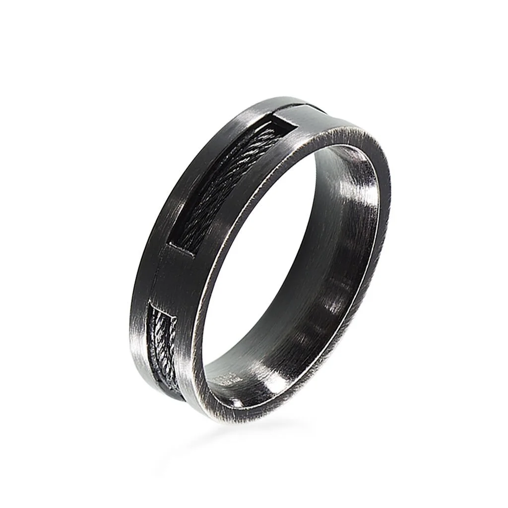 Bague Phebus Him Acier Pvd Noir Cable Noir