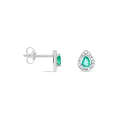 Histoire D’Or Boucles D’oreilles Puces Elheme Or Blanc Emeraude Et Diamant