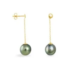 Histoire D’Or Boucles D’oreilles Puces Marie-noela Or Jaune Perle De Tahiti