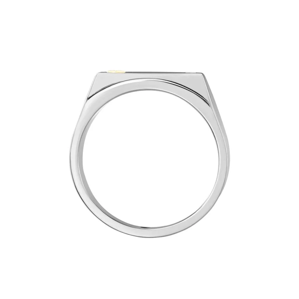 Chevalière Jourdan Acier Bicolore Diamant Blanc