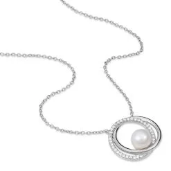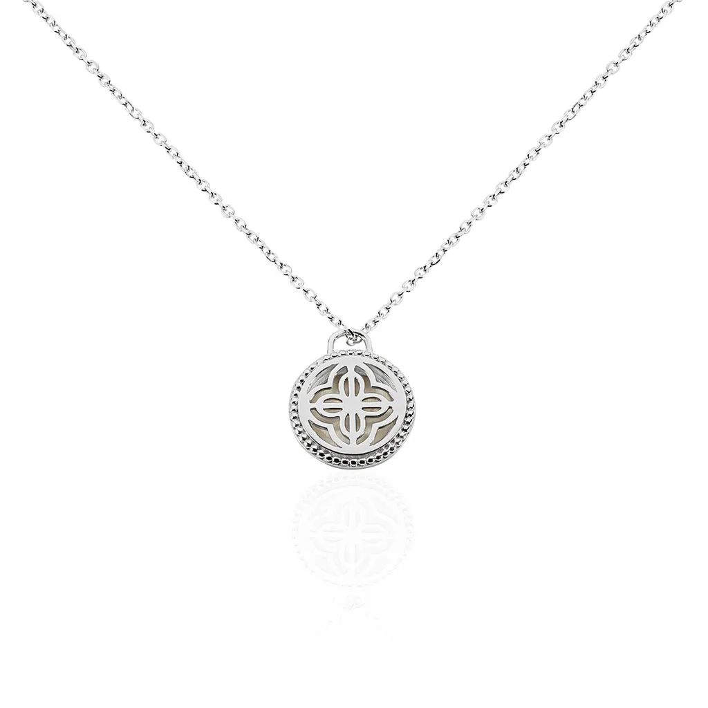 Collier Argent 925/1000 Ronde Reversible Nacre Et Rosace 45cm