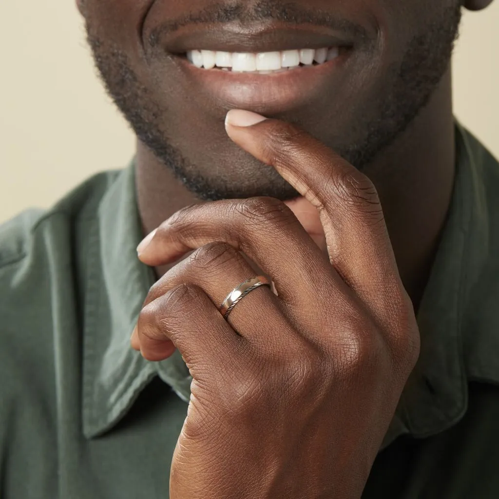 Alliance Argent Bicolore 925/1000 Ruban Lisieres Cisellees 4mm