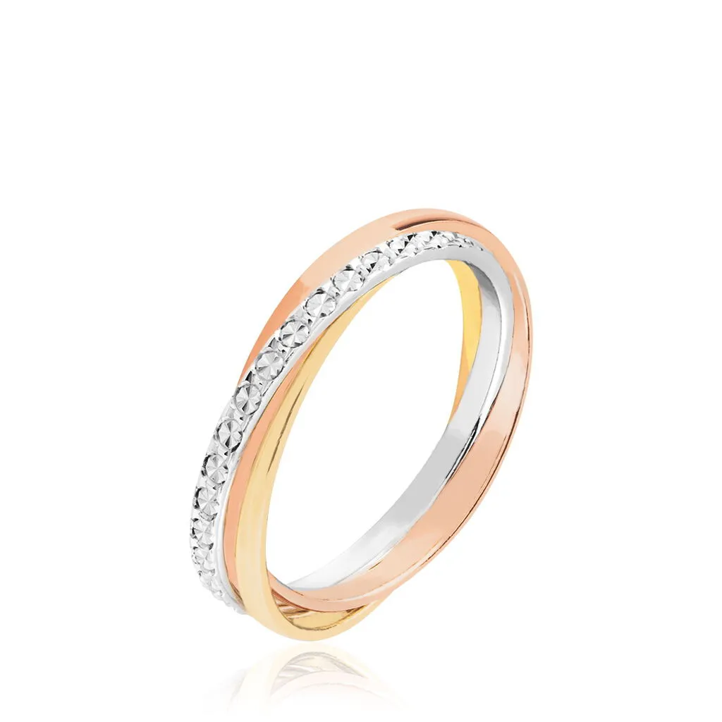 Alliance Entrelacee Diamantee Ruban Plat Or Tricolore