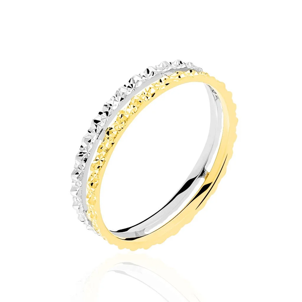 Alliance Or Bicolore Jaune Et Blanc 375/1000 Fantaisie Ajourée 2 Rangs Diamantée 4.5mm