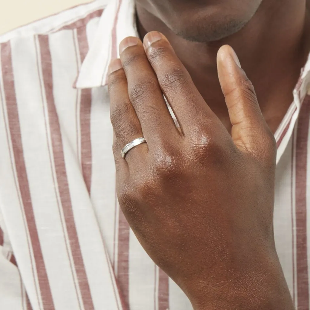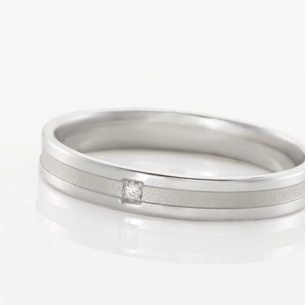 Alliance Or Blanc 375/1000 Ruban Sable Avec 1 Diamant Serti Grain 4mm