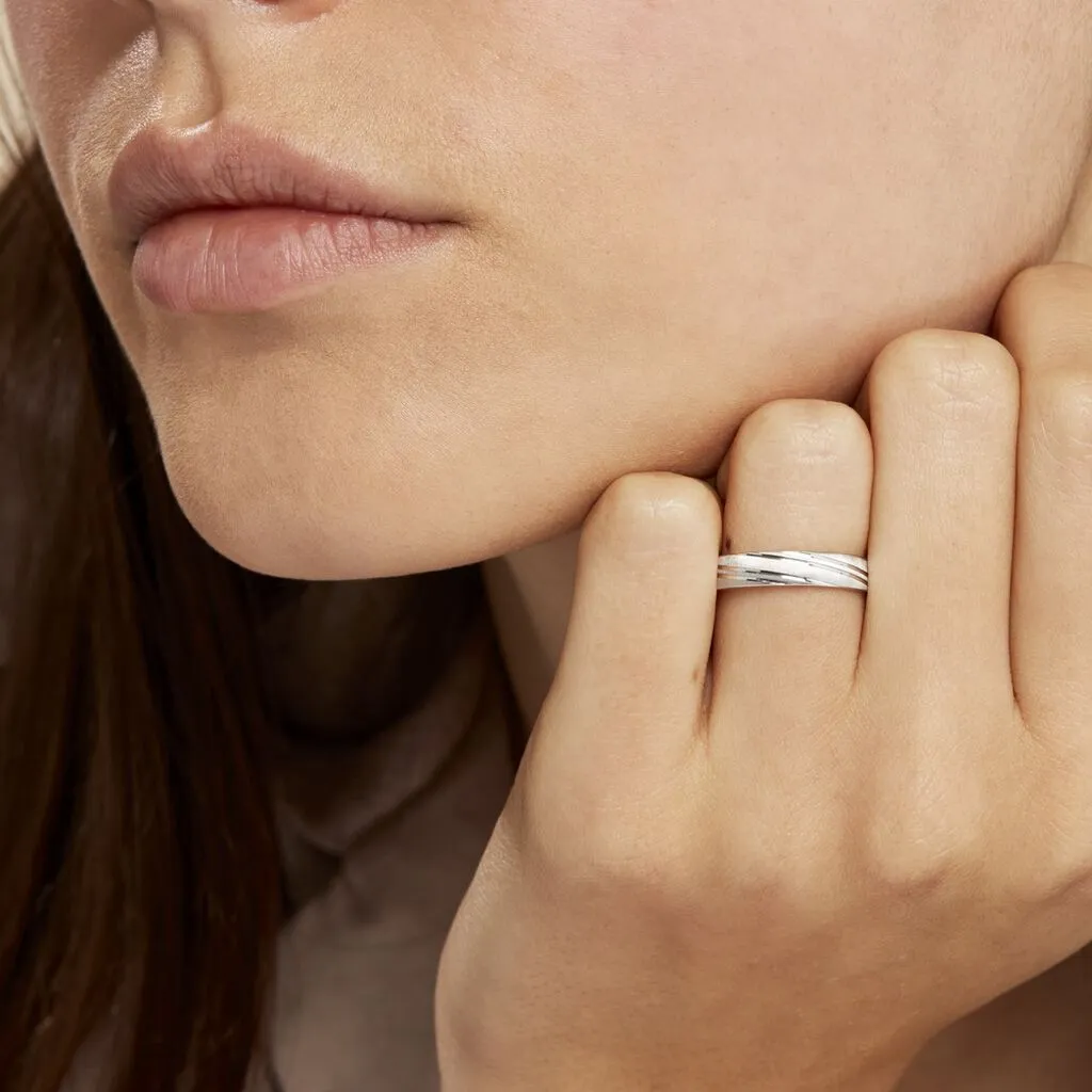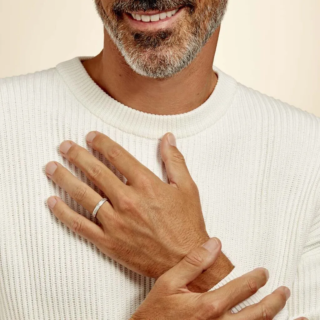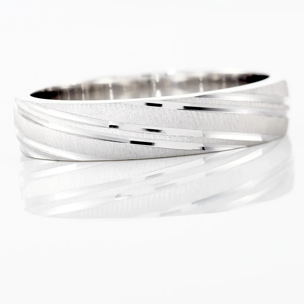 Alliance Argent Blanc 925/1000 Brossé + Striures 4 Mm