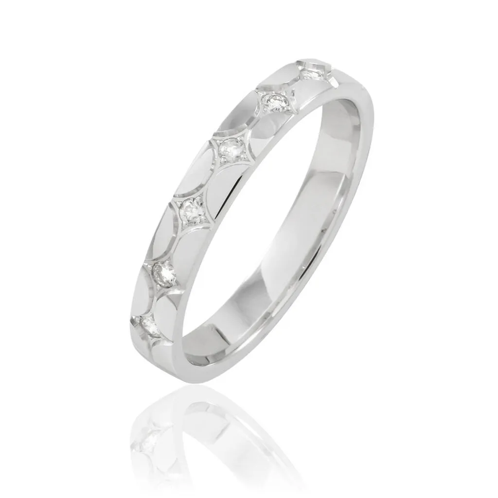 Alliance Or Blanc 750/1000 Fantaisie Sertie Diamants