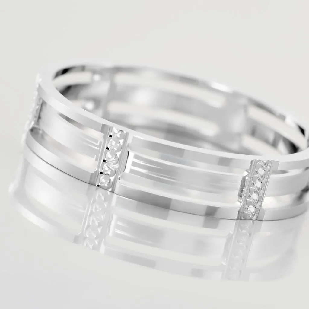 Alliance Or Blanc 750/1000 Fantaisie Ajourée Diamantée 5mm