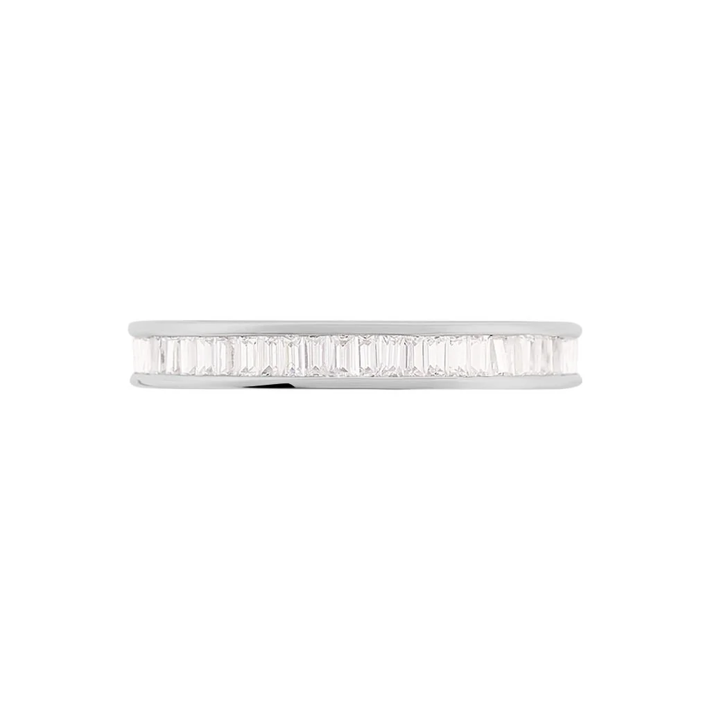 Alliance Or Blanc 375/1000 Anneau Oxydes De Zirconium Taille Baguette Sertis Rail