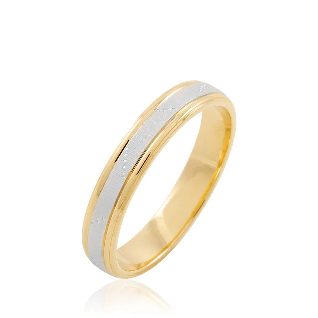 Alliance Or Bicolore 750/1000 Blanc Et Jaune Fantaisie 3.5mm