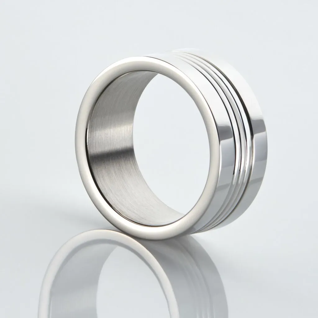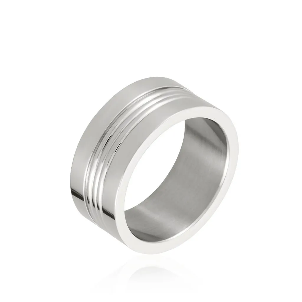 Bague Acier Blanc Anneau Strie