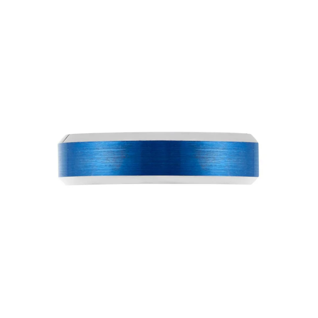 Bague Acier Bleu Tour Complet Côtés Biseautés