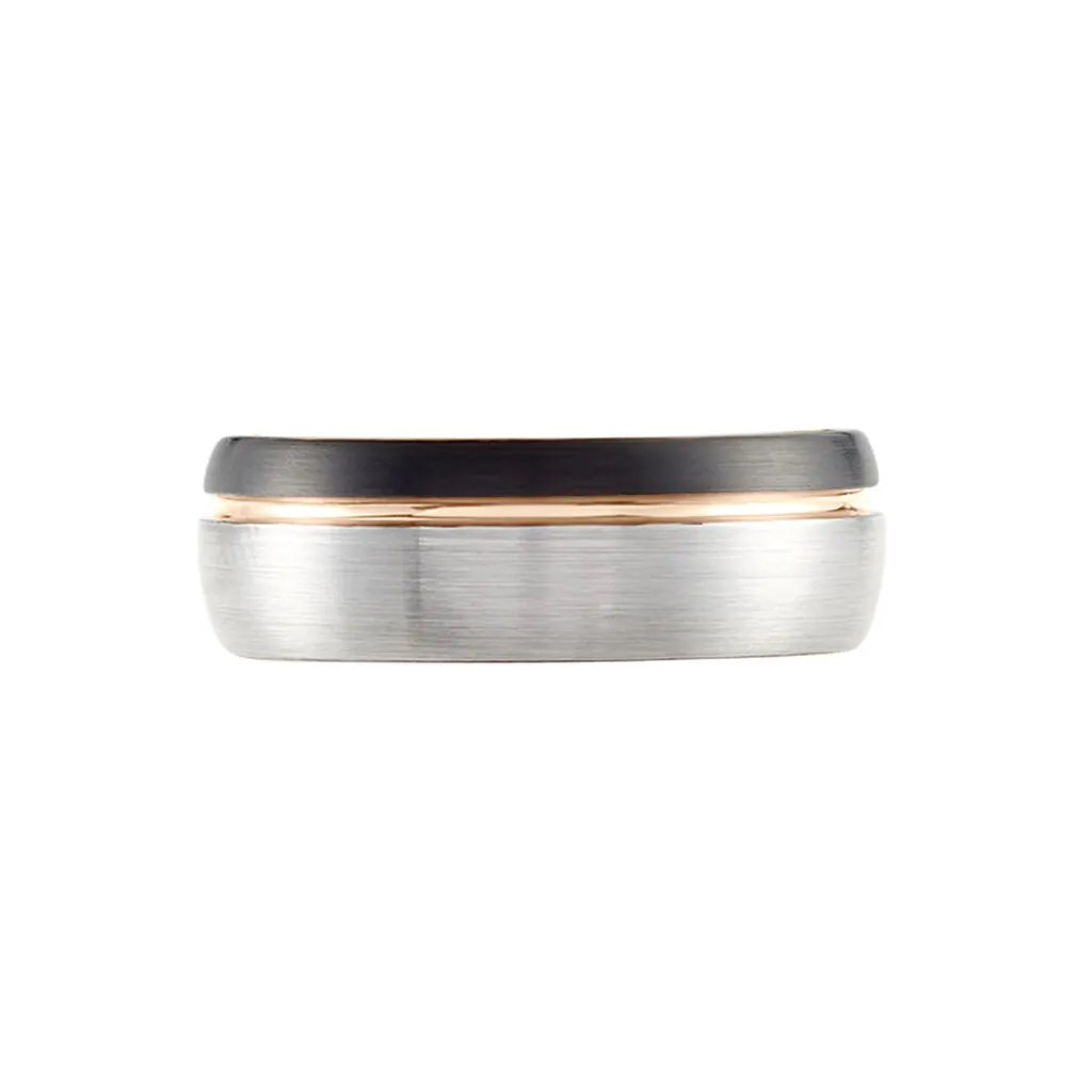 Bague Acier Gris Tour Complet Liseret Rose Et Noir