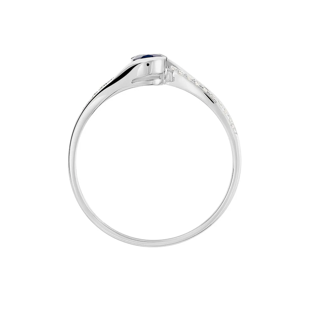 Bague Or Blanc 375/1000 Saphir Central Et Vague Diamants