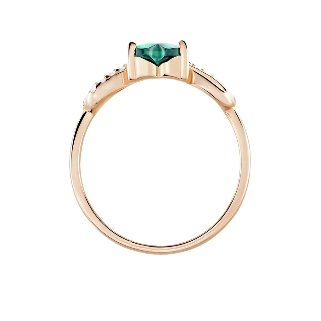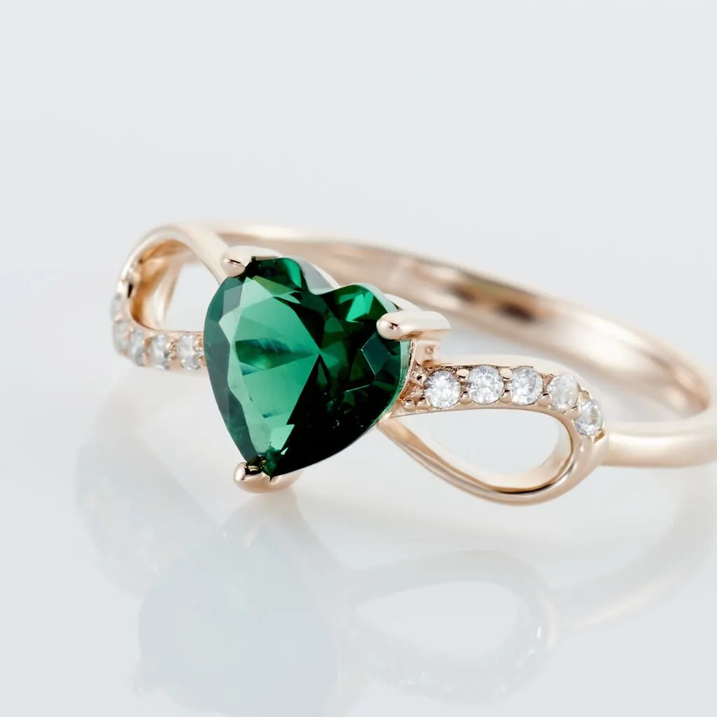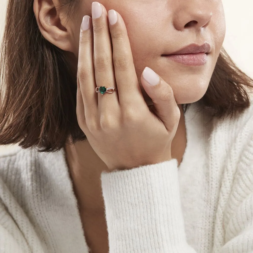 Bague Argent Rose 925/1000 Cœur Serti Griffes Oxyde De Zirconium Vert Accompagné