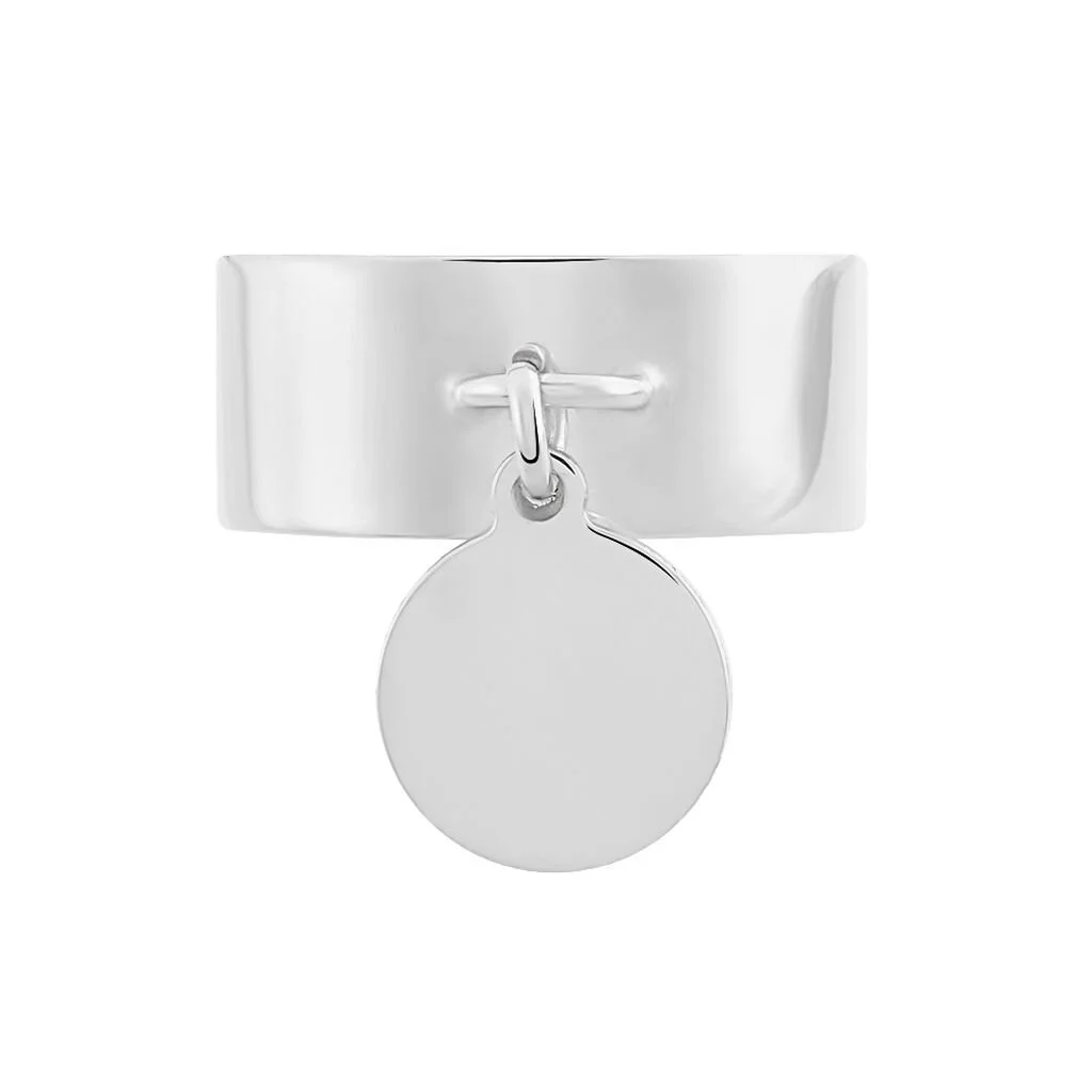 Bague Argent Blanc 925/1000 Anneau Large Pampille Forme Pastille 9mm