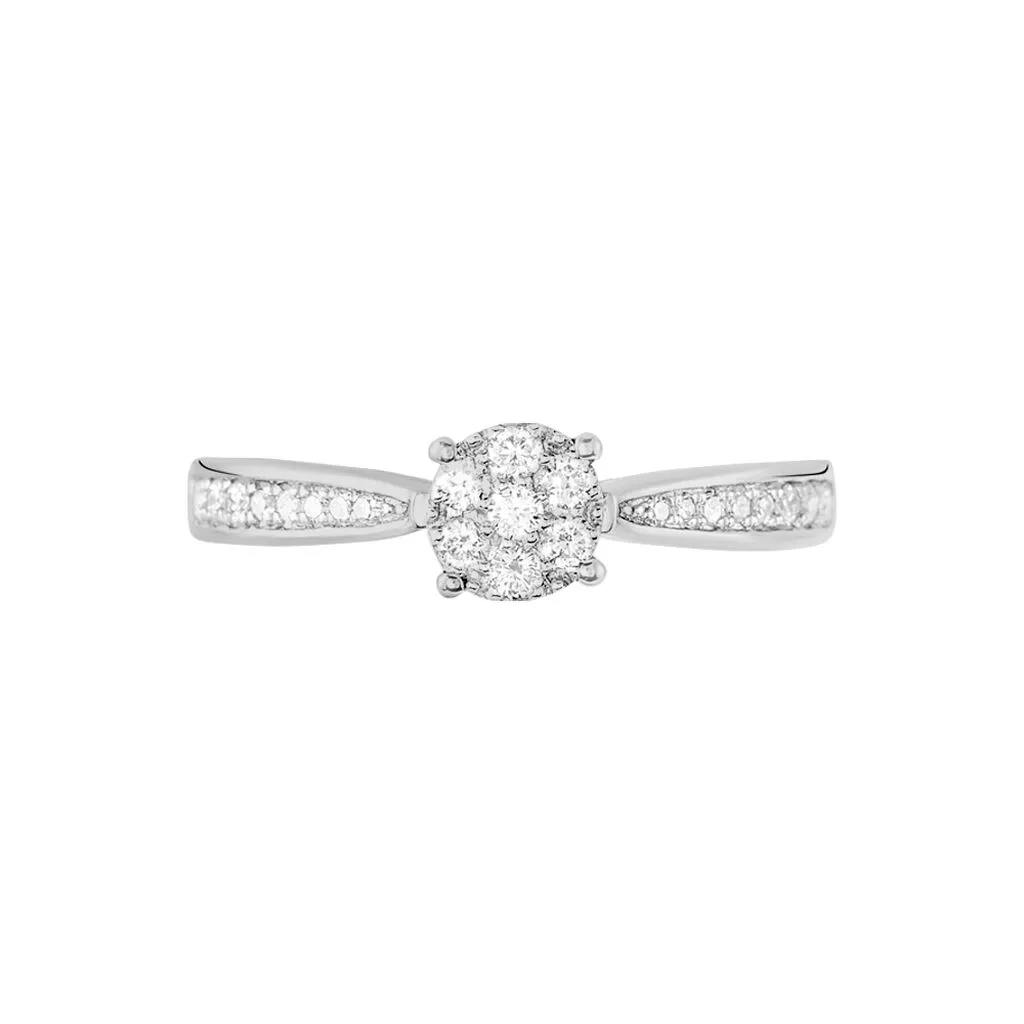Bague Or Blanc 375/1000 Multipierres Accompagnées Diamants 0.24cts