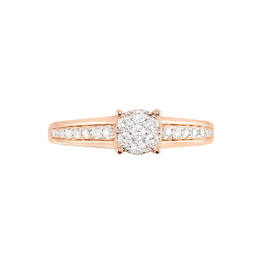 Bague Or Rose 375/1000 Multi Pierres Accompagnees Diamants 0.29cts