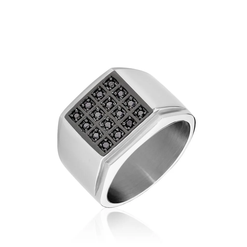Bague Chevaliere Acier Vieillit Carre Pavage Oxydes De Zirconium