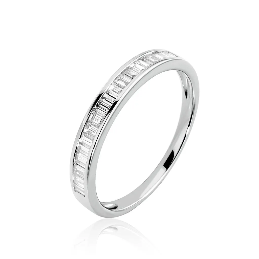 Bague Or Blanc 750/1000 Anneau Simple Diamants Baguette