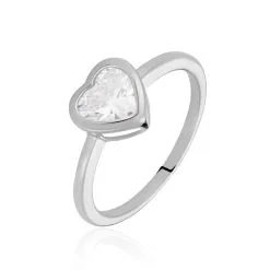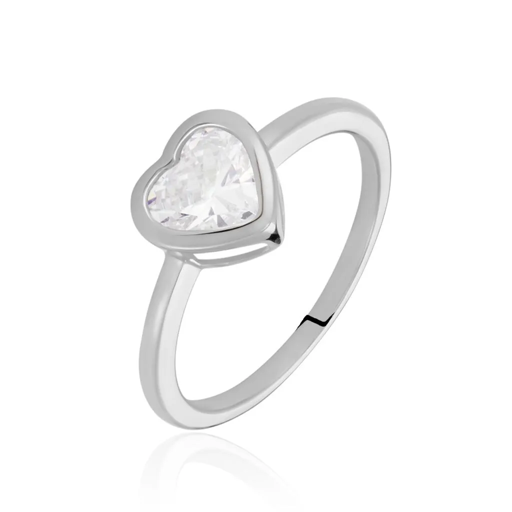 Bague Argent 925/1000 Cœur Serti Clos Oxyde De Zirconium