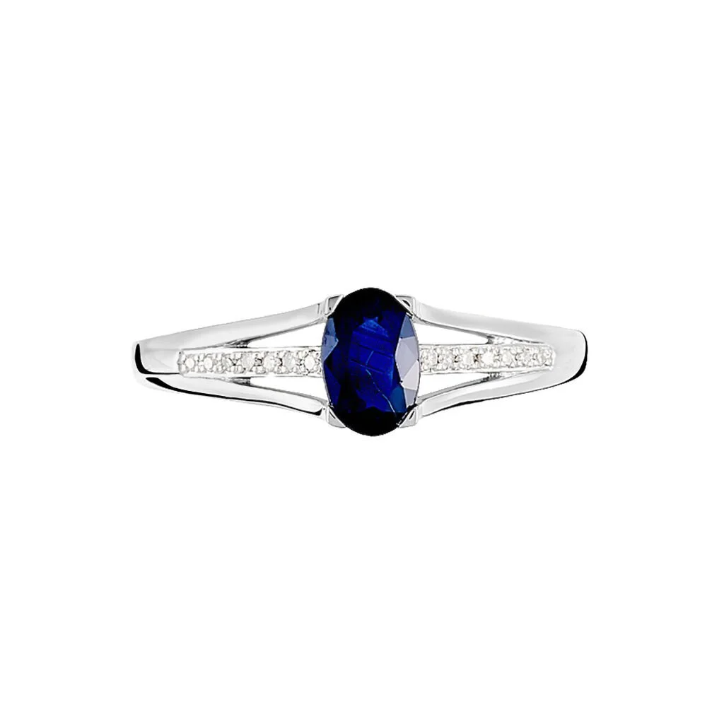 Bague Or Blanc 375/1000 Saphir Central Corps De Bague Accompagne Diamants