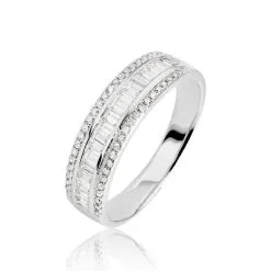 Bague Or Blanc 750/1000 Gm Diamants Baguettes 1.01cts Et Ronds