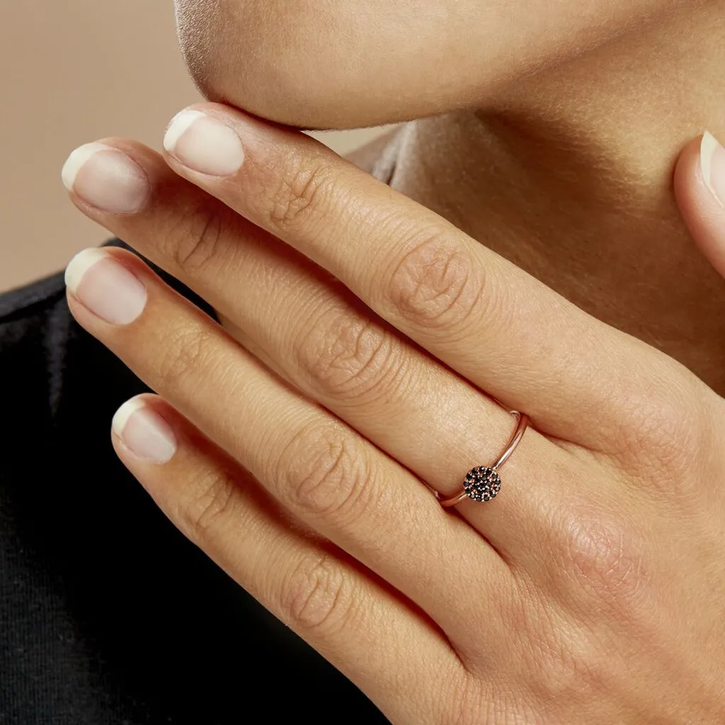 Bague Argent Rose 925/1000 Pastille Micro Setting Spinelles Noires
