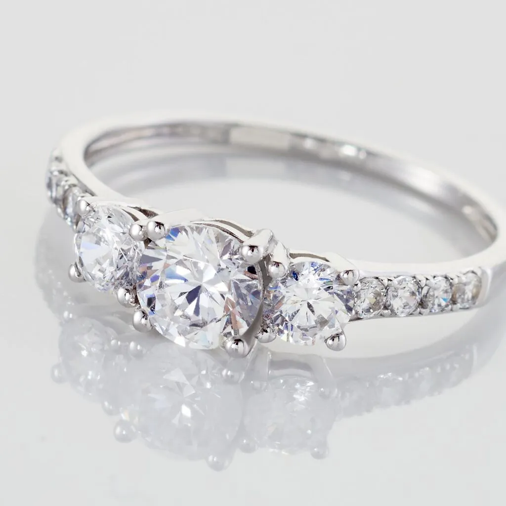 Bague Or Blanc 375/1000 Trilogie Accompagnee Oxydes De Zirconium