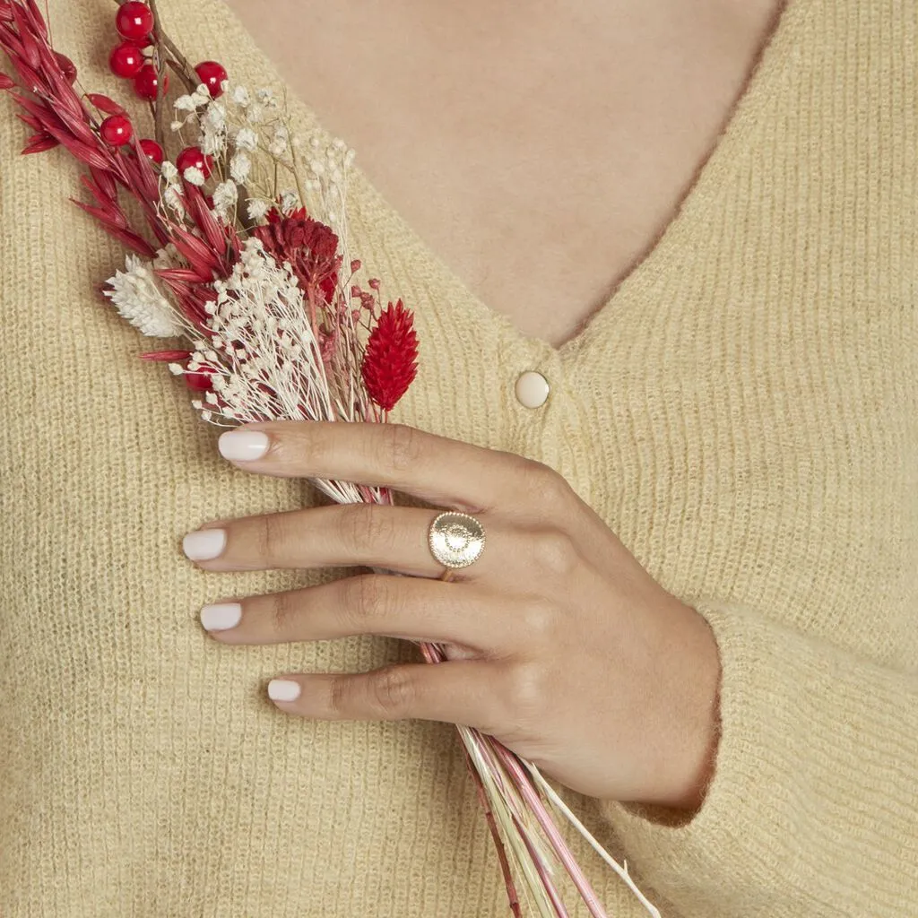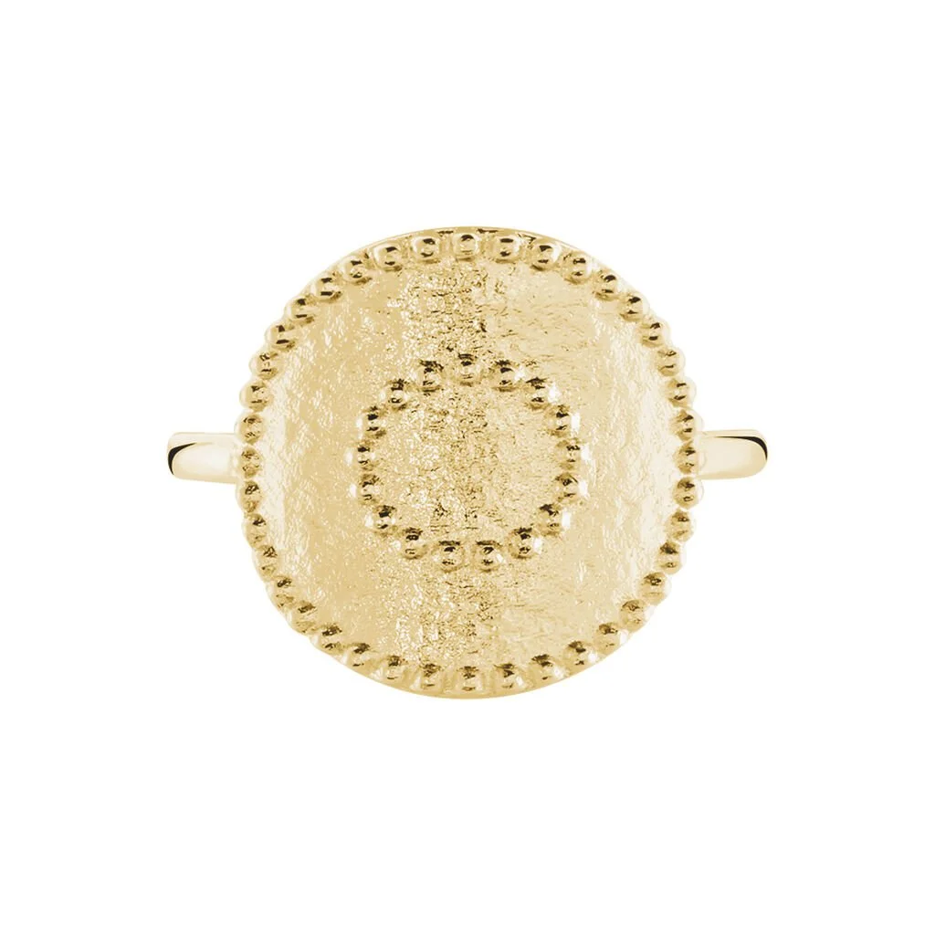 Bague Plaque Or Forme Ronde Effet Perle Et Martele