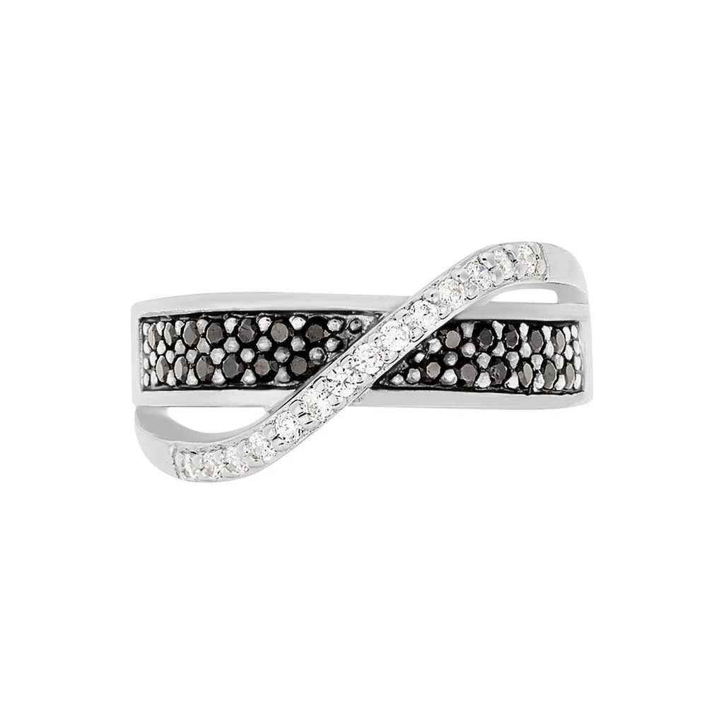 Bague Argent Blanc 925/1000 2 Rangs Oxydes De Zirconium Noirs Et 1 Rang Oxydes De Zirconium Blancs