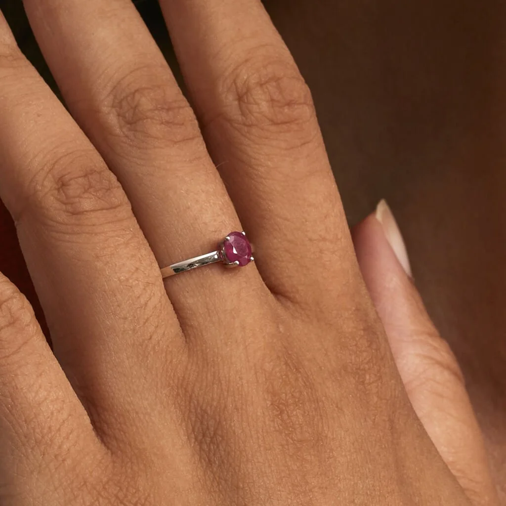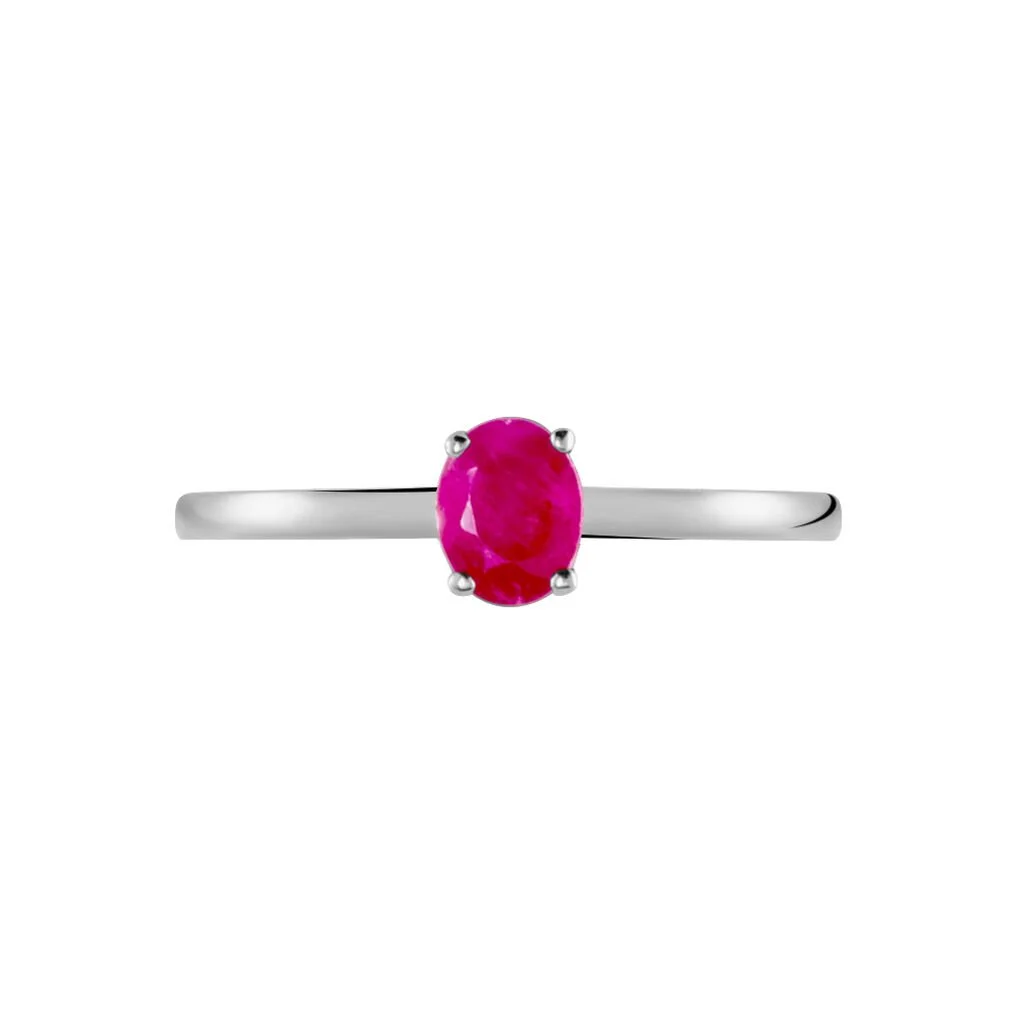 Bague Or Blanc 375/1000 Rubis Oval Serti 4 Griffes