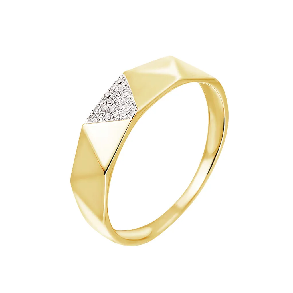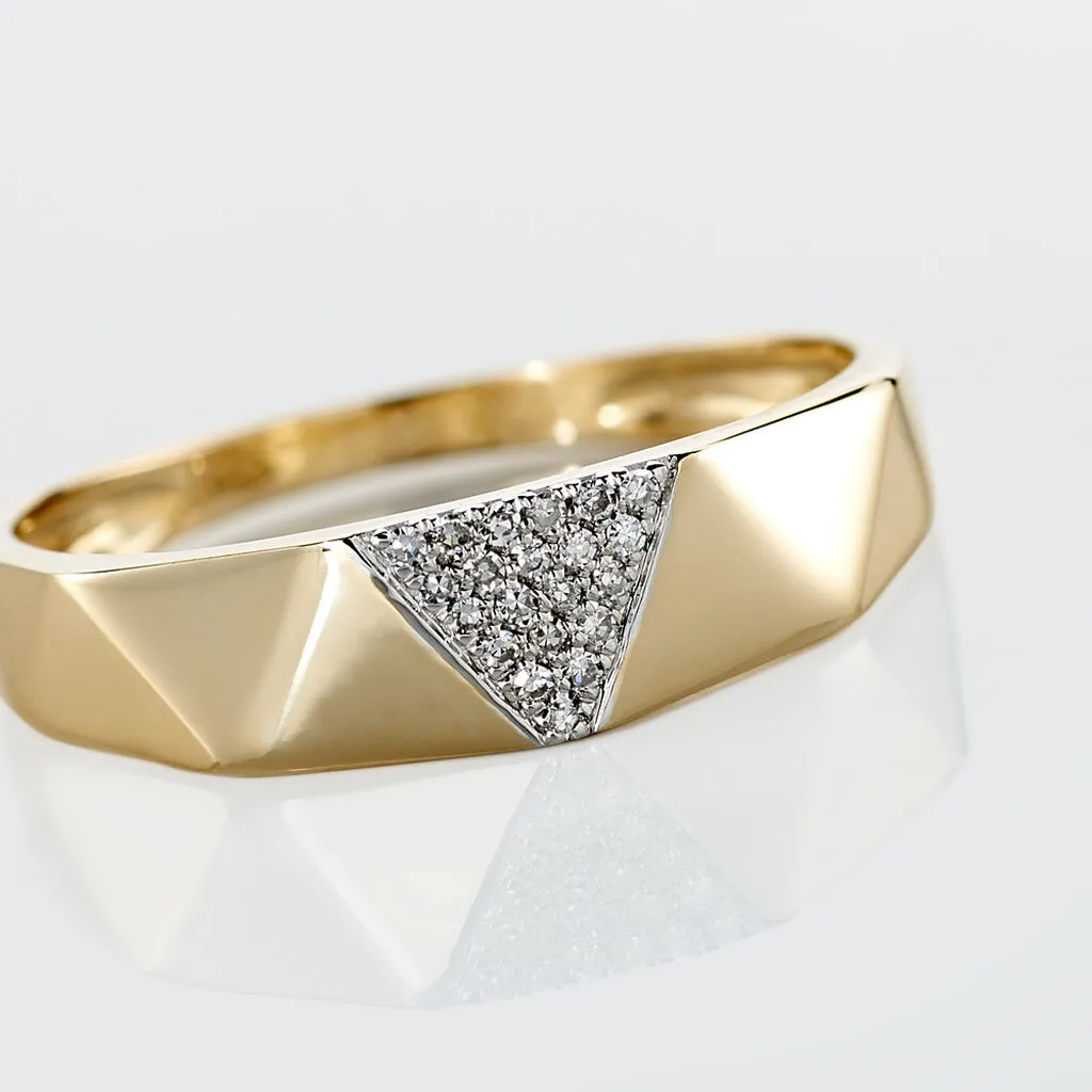 Bague Or Jaune 375/1000 Motifs Triangles Facettes Pavage Diamants