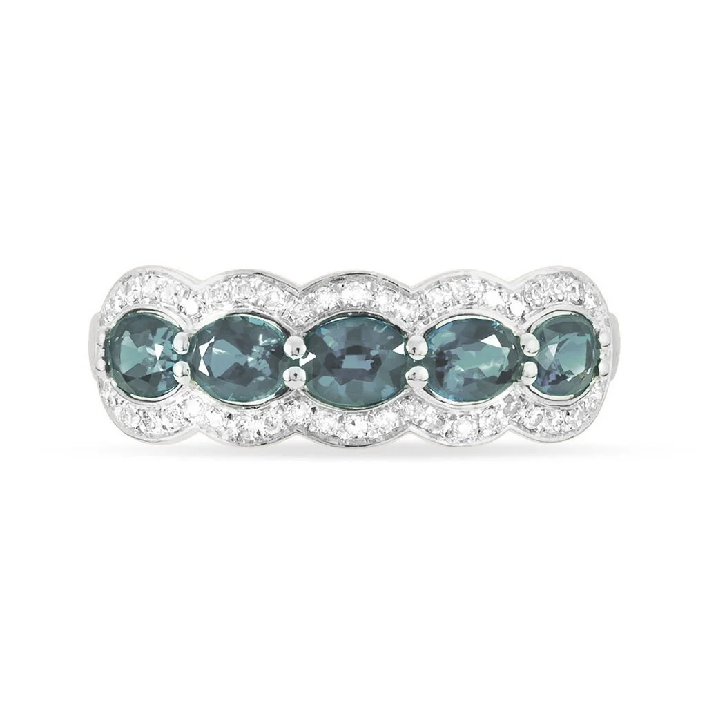 Bague Margaux Or Blanc Aigue Marine Et Diamant