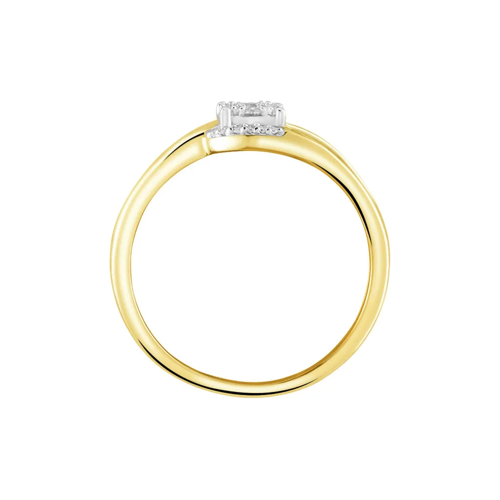 Bague Or Jaune 375/1000 Multipierre Accompagne Vrille Pavage Diamants