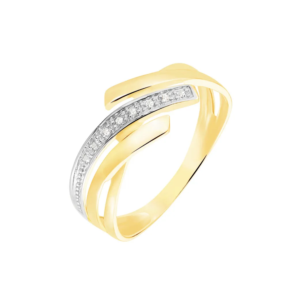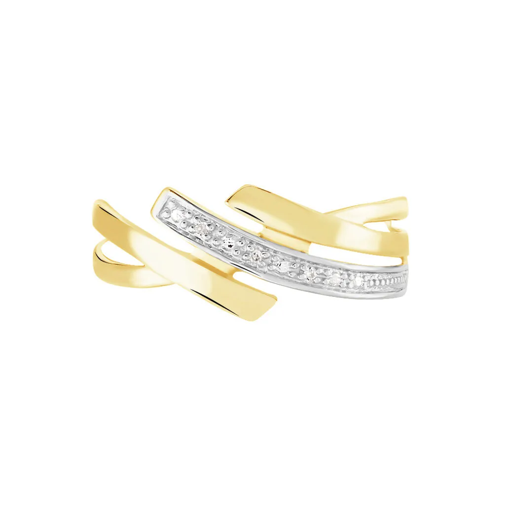 Bague Or Jaune 375/1000 Croisee + Diamants