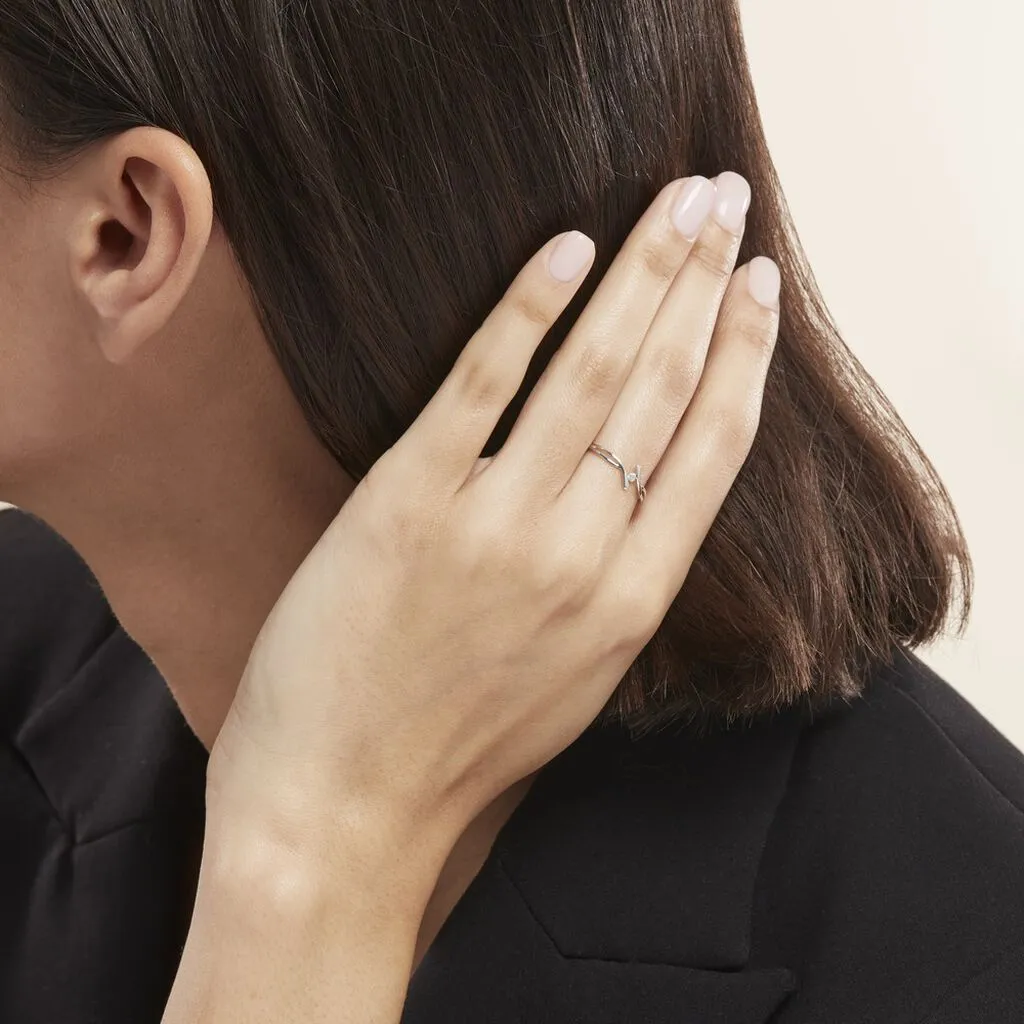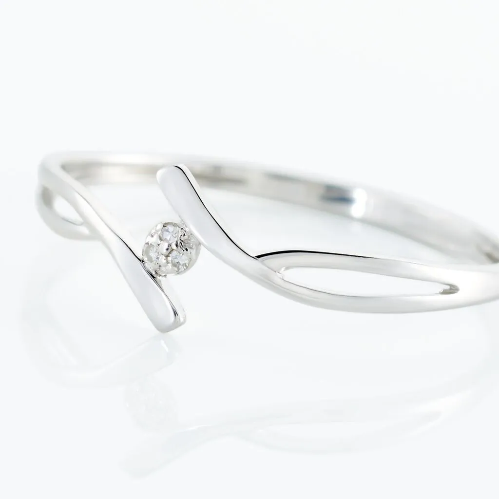 Bague Or Blanc 375/1000 Forme Vague Pavage Diamants