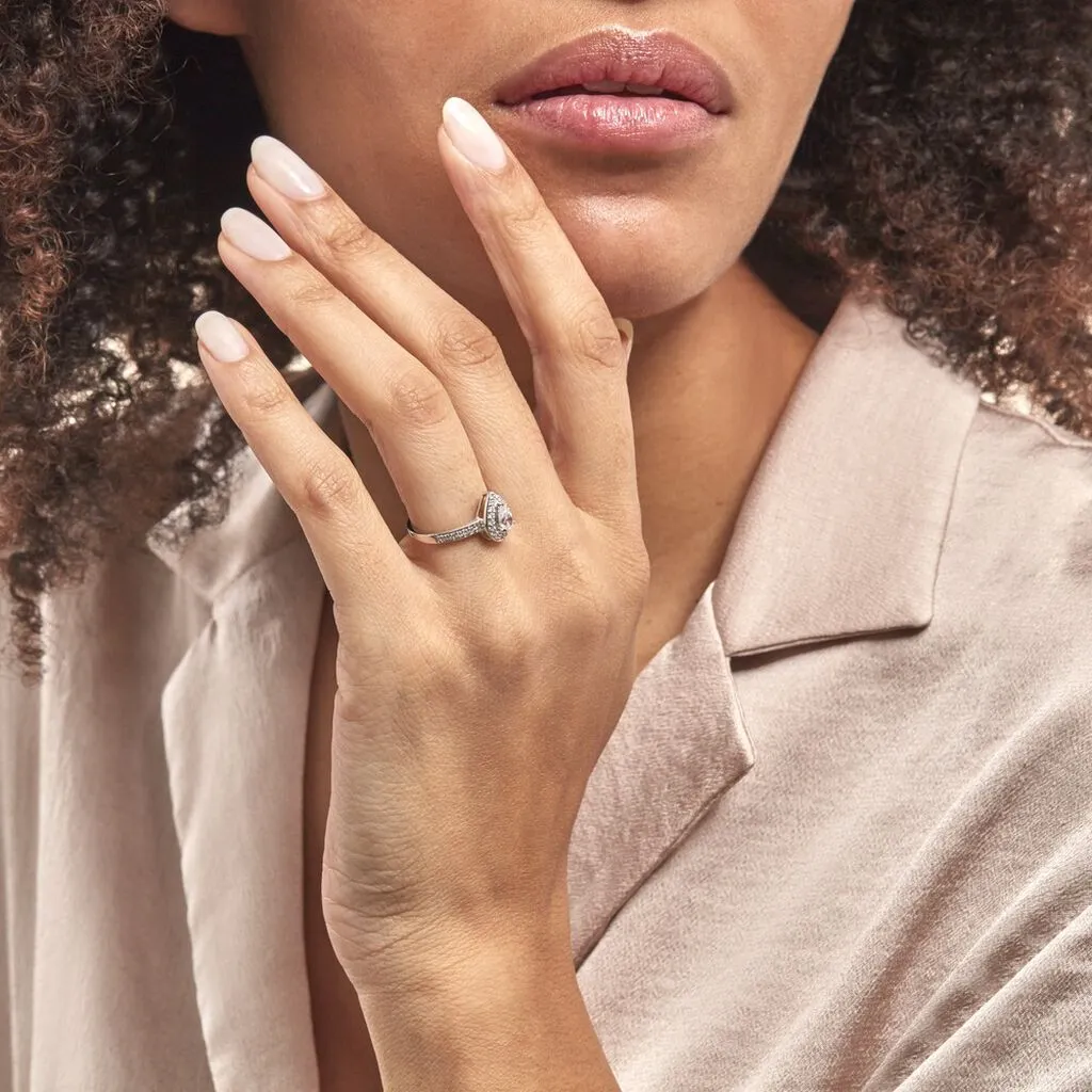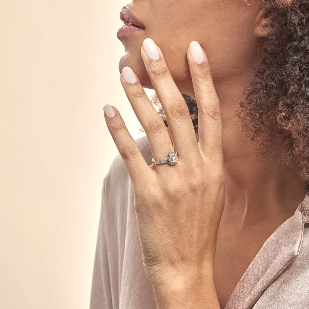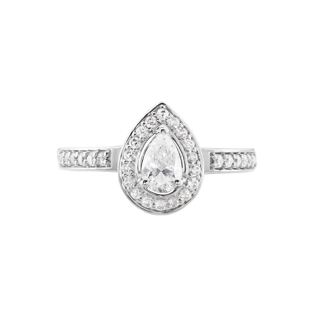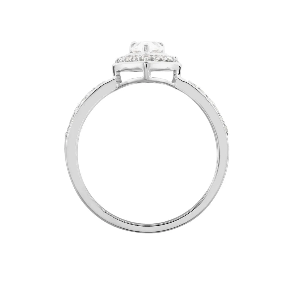 Bague Or Blanc 375/1000 Oxyde De Zirconium Blanc 0.71cts Serti Griffes Forme Poire Entourage Et Accompagne Oxyde