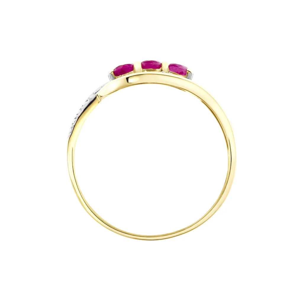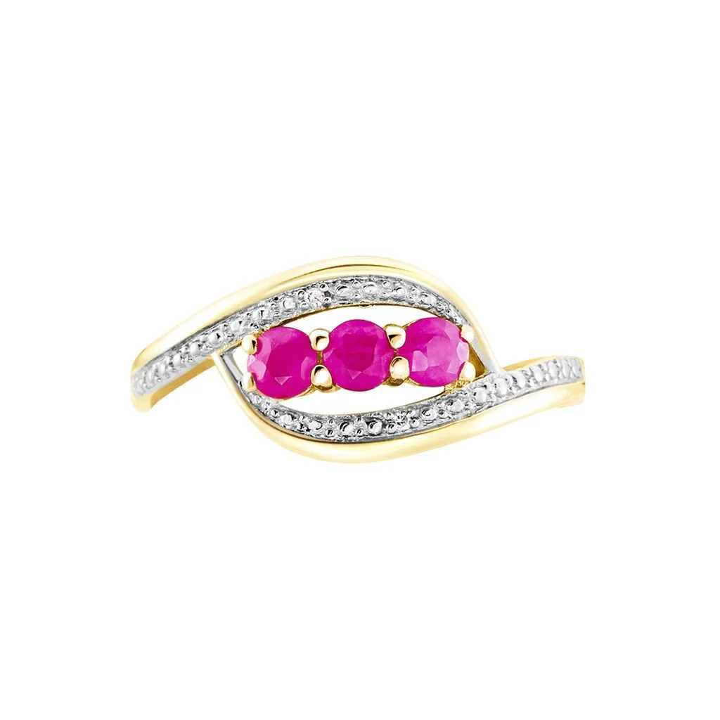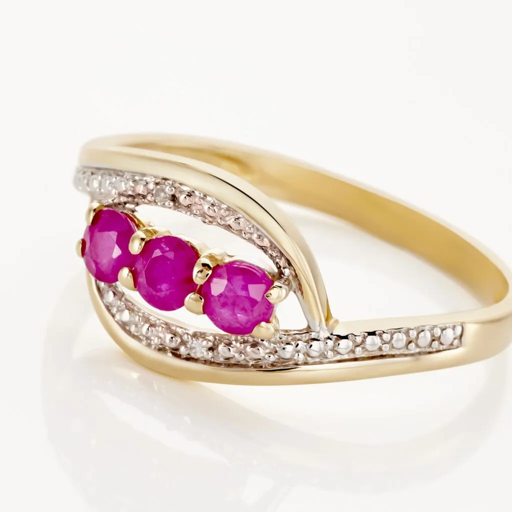 Bague Or Jaune 375/1000 Trilogie Rubis Et Diamants