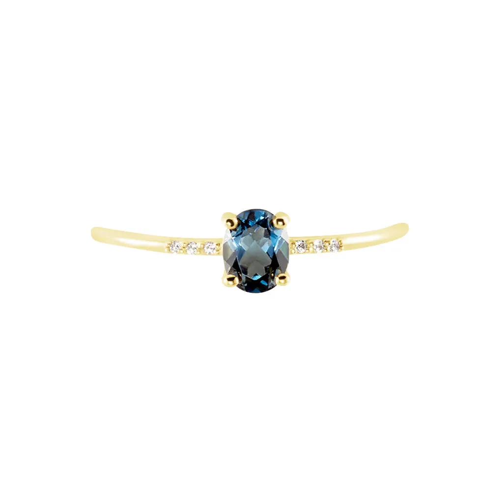 Bague Or Jaune 375/1000 Topaze Bleu London 0.36 Cts Serti 4 Griffes Accompagnée Oxydes De Zirconium