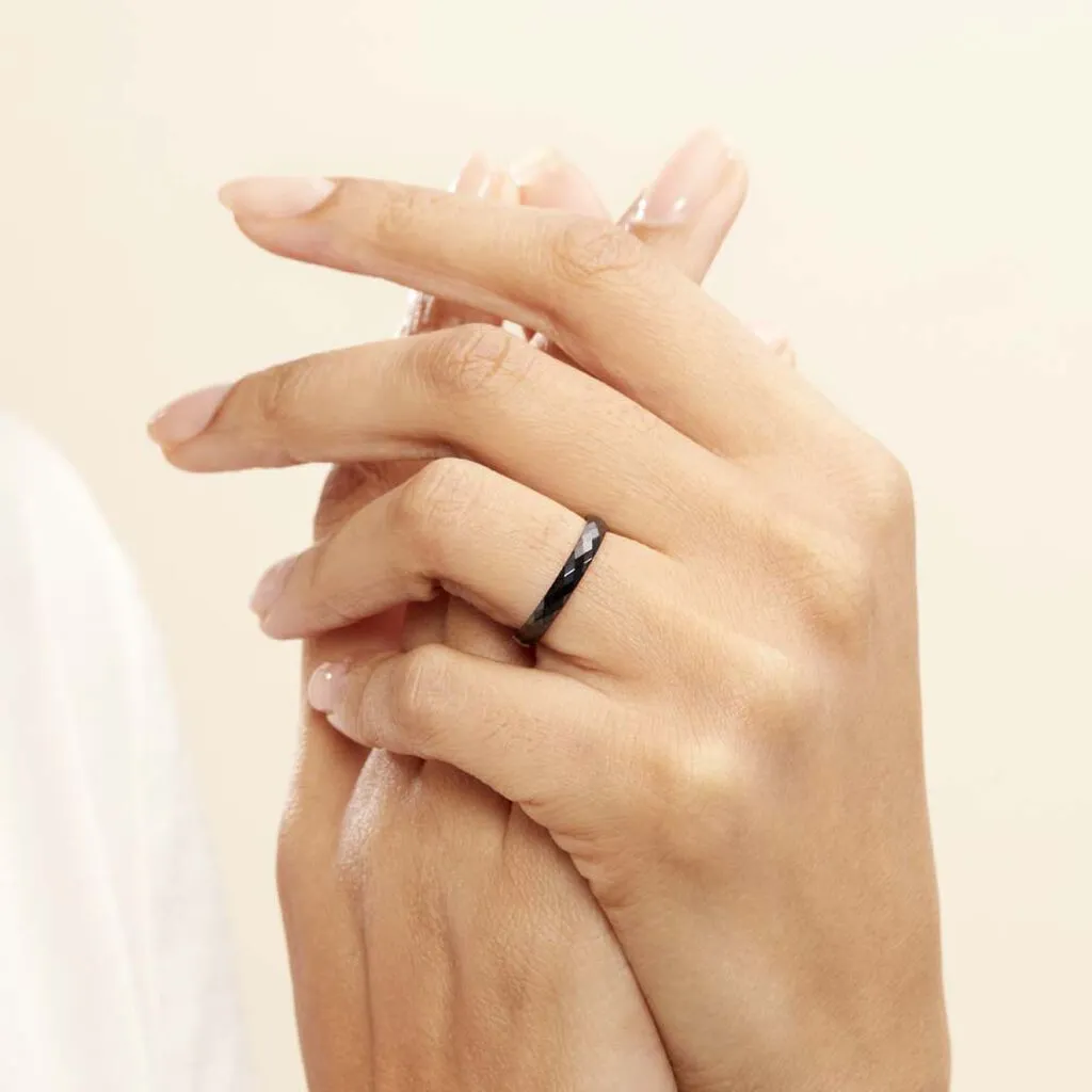 Bague Anneau Facettee Ceramique Noire 3mm