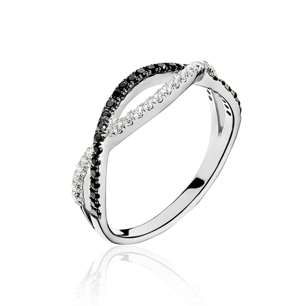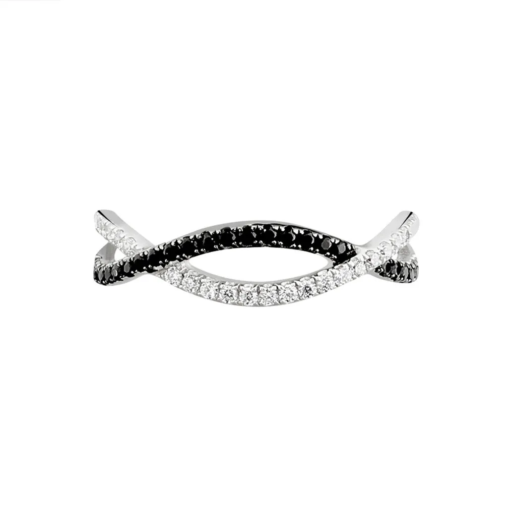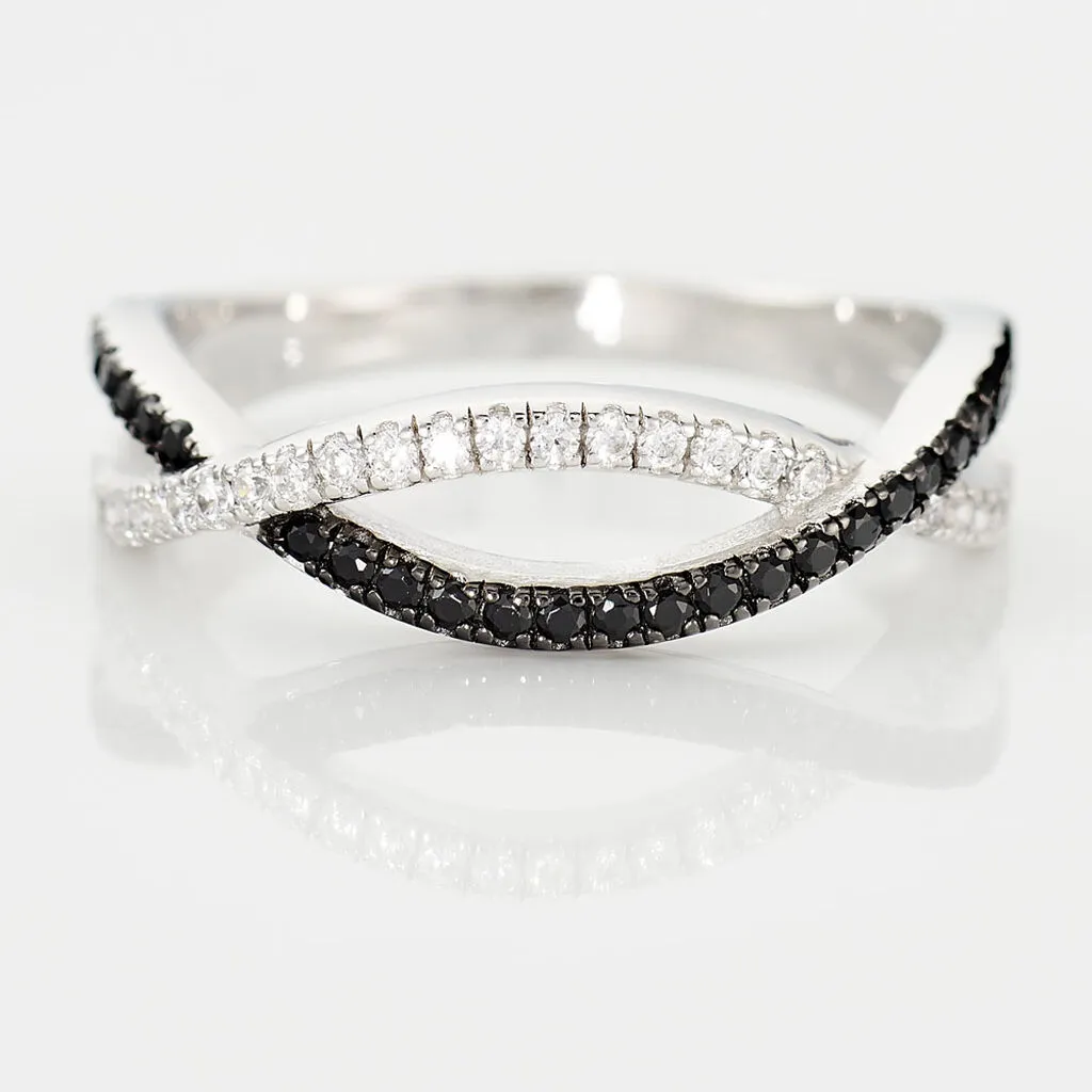 Bague Argent Blanc 925/1000 Vagues Oxydes De Zirconium Noirs Et Blancs
