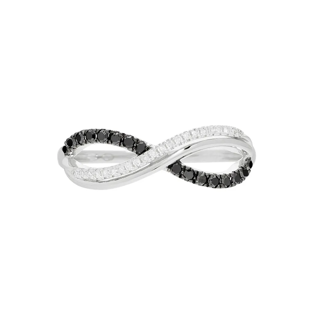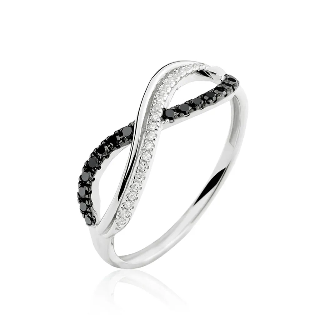 Bague Or Blanc 375/1000 Pavage Diamants Noirs Et Blancs Forme Infini