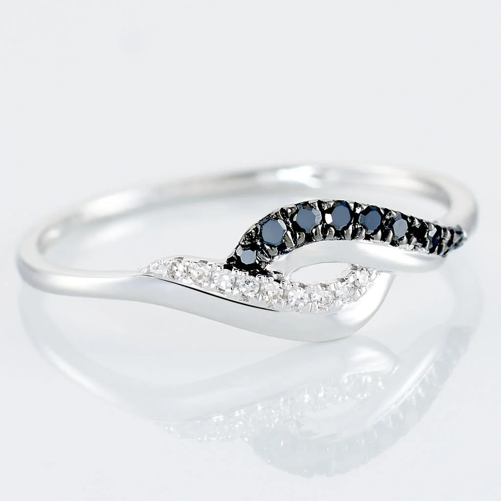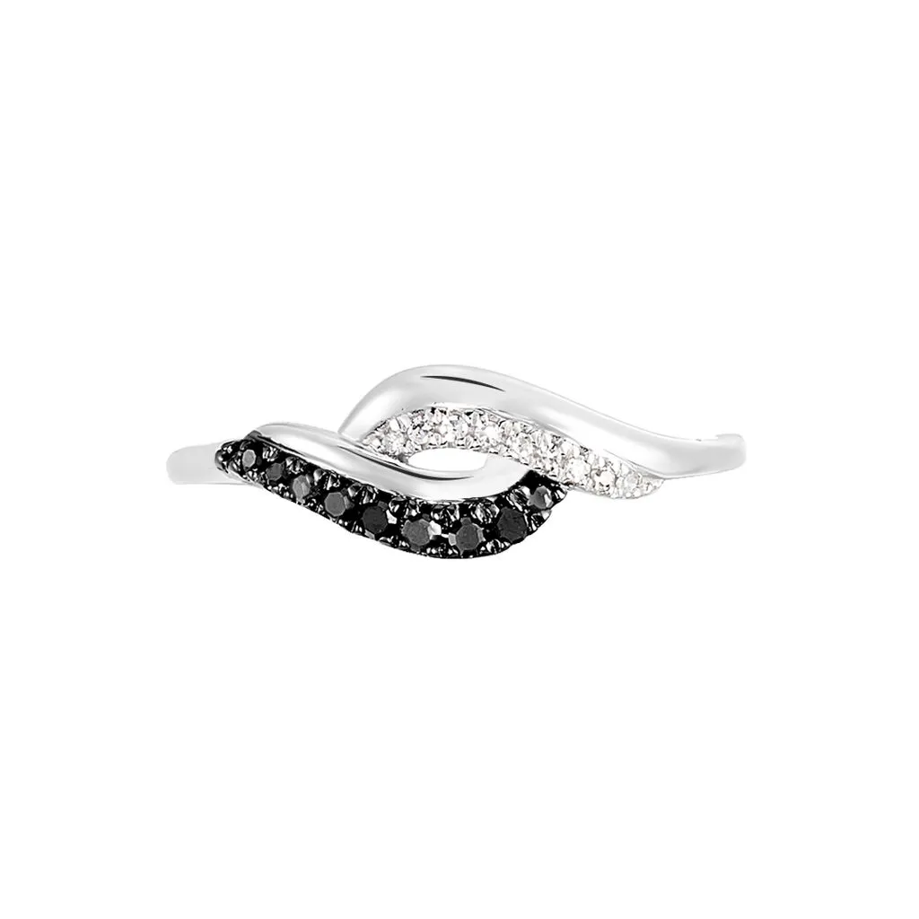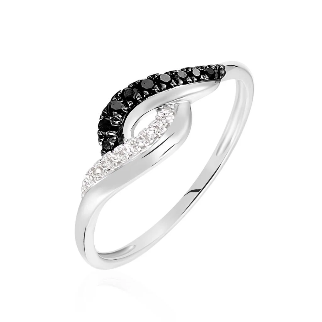 Bague Or Blanc 375/1000 Diamants Et Diamants Noirs