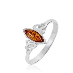 Bague Argent 925/1000 Ambre Cognac Forme Navette