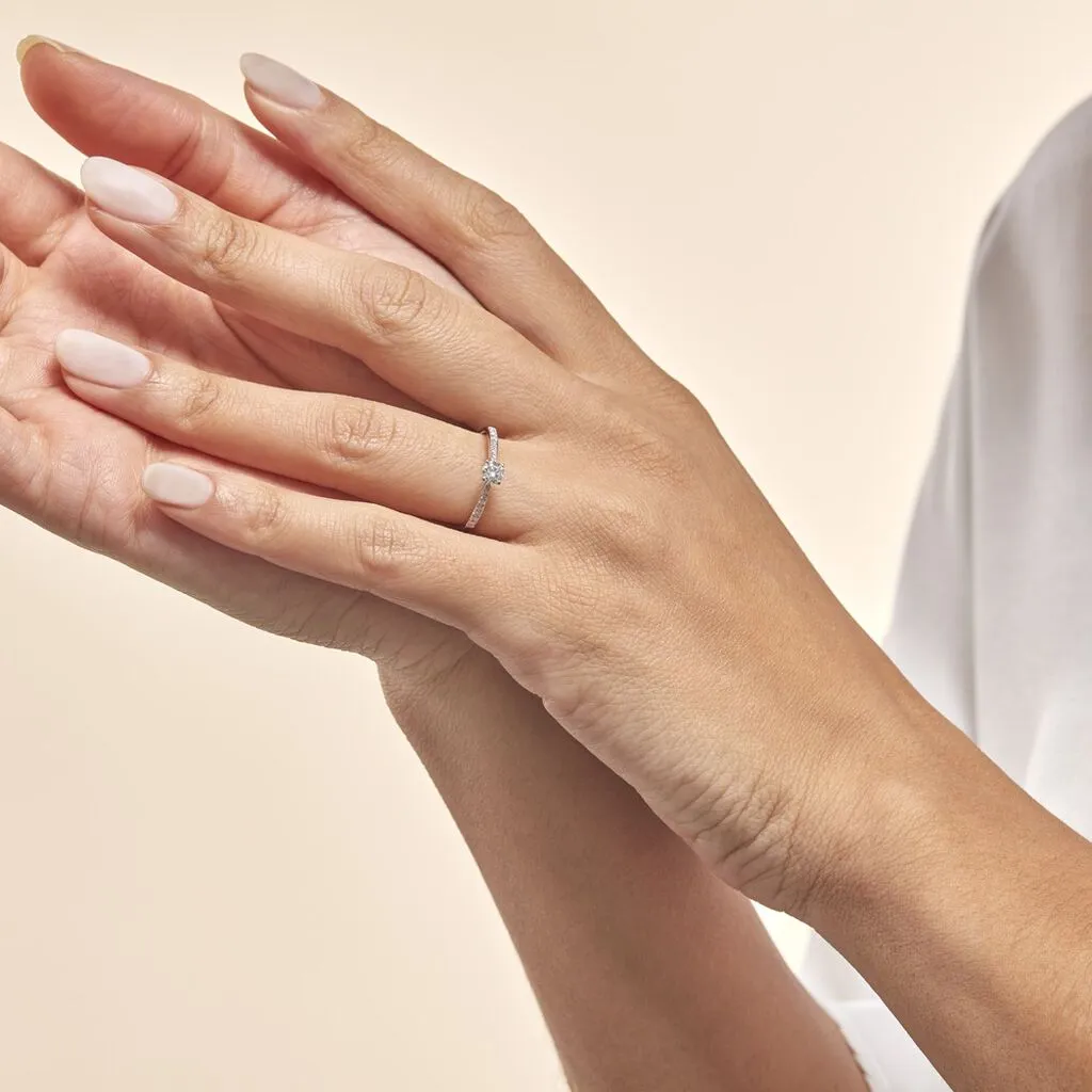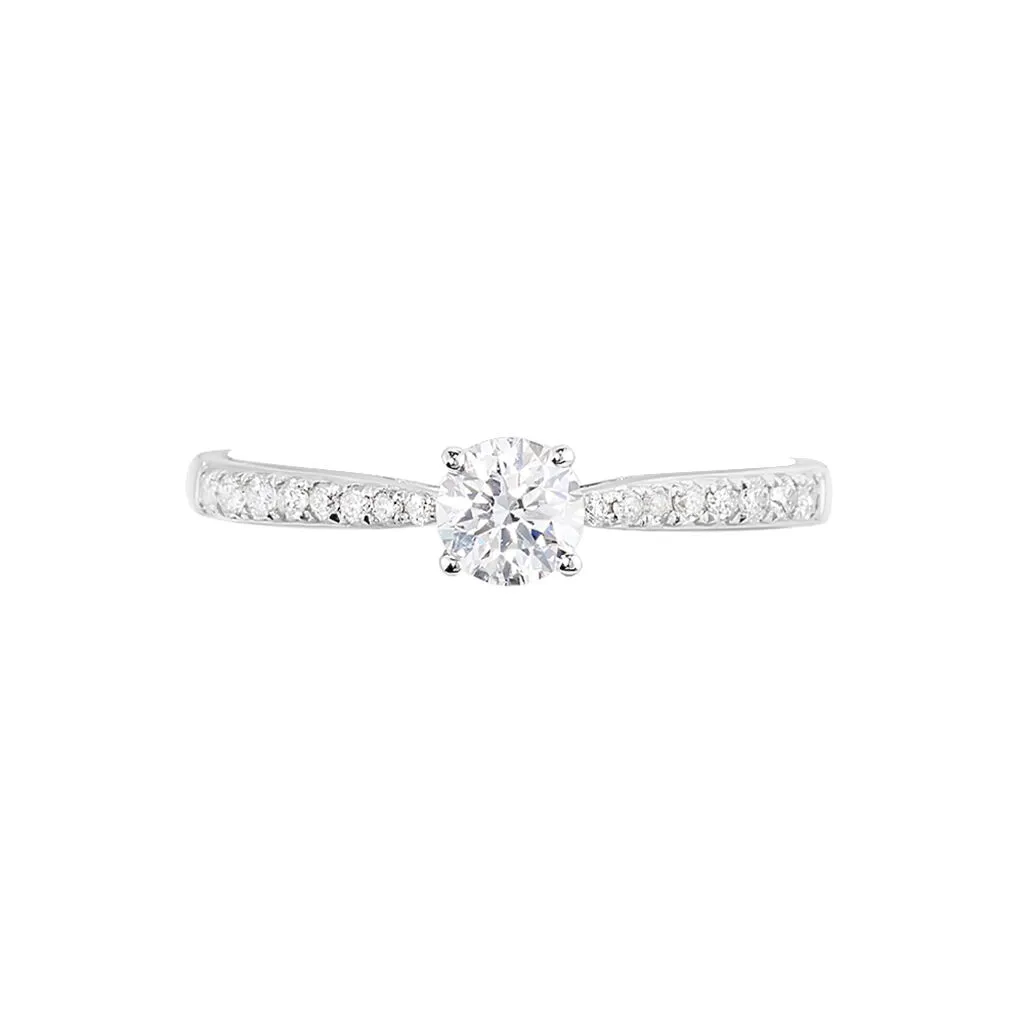 Solitaire Or Blanc 375/1000 Diamant Central 0.30cts Serti Griffes Accompagne Diamants