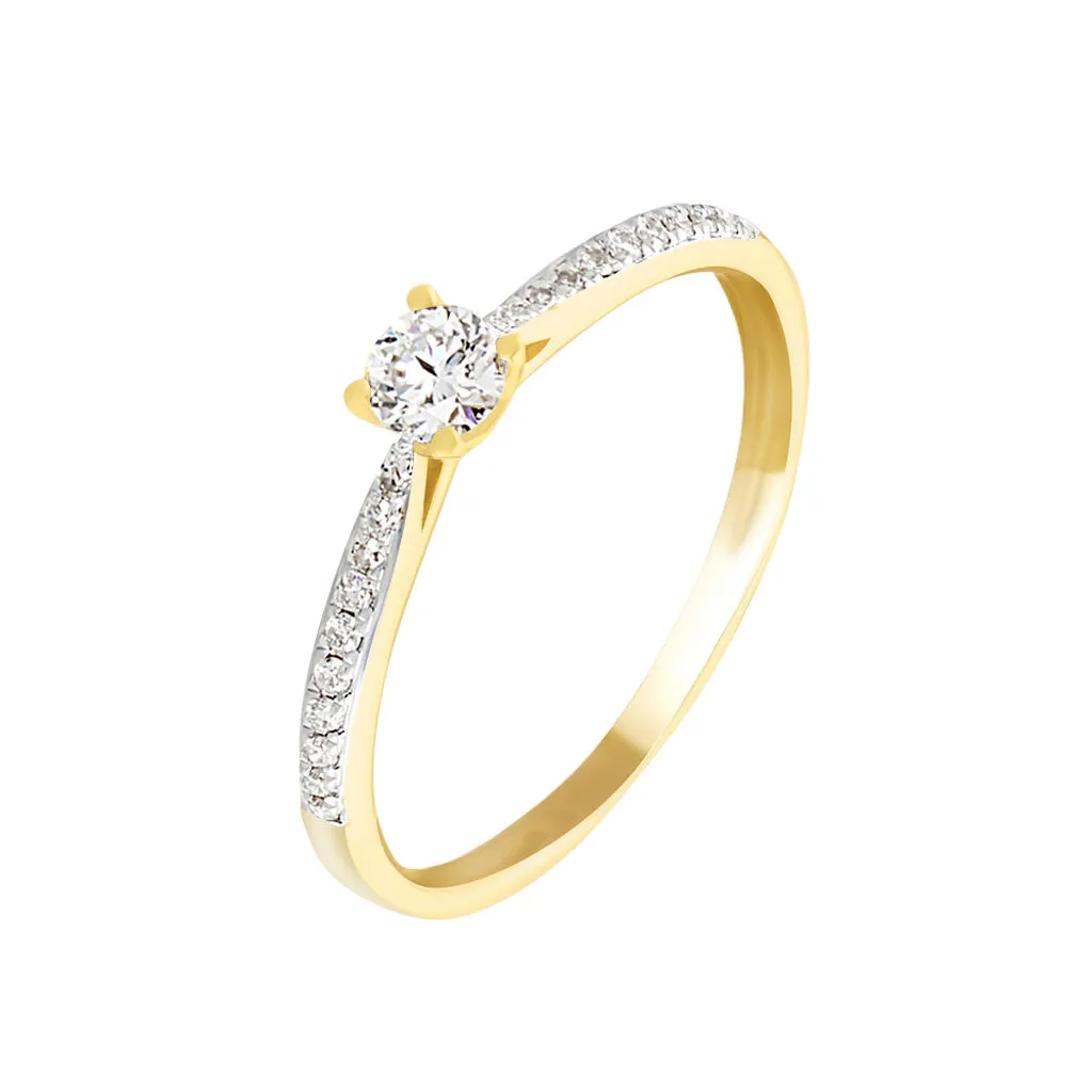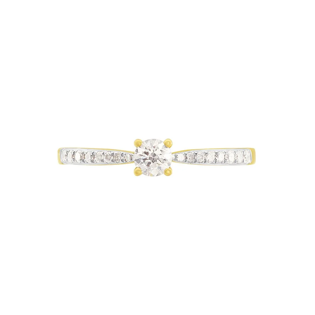 Solitaire Or Jaune 375/1000 Diamant Central 0.20cts Serti Griffes Accompagne Diamants