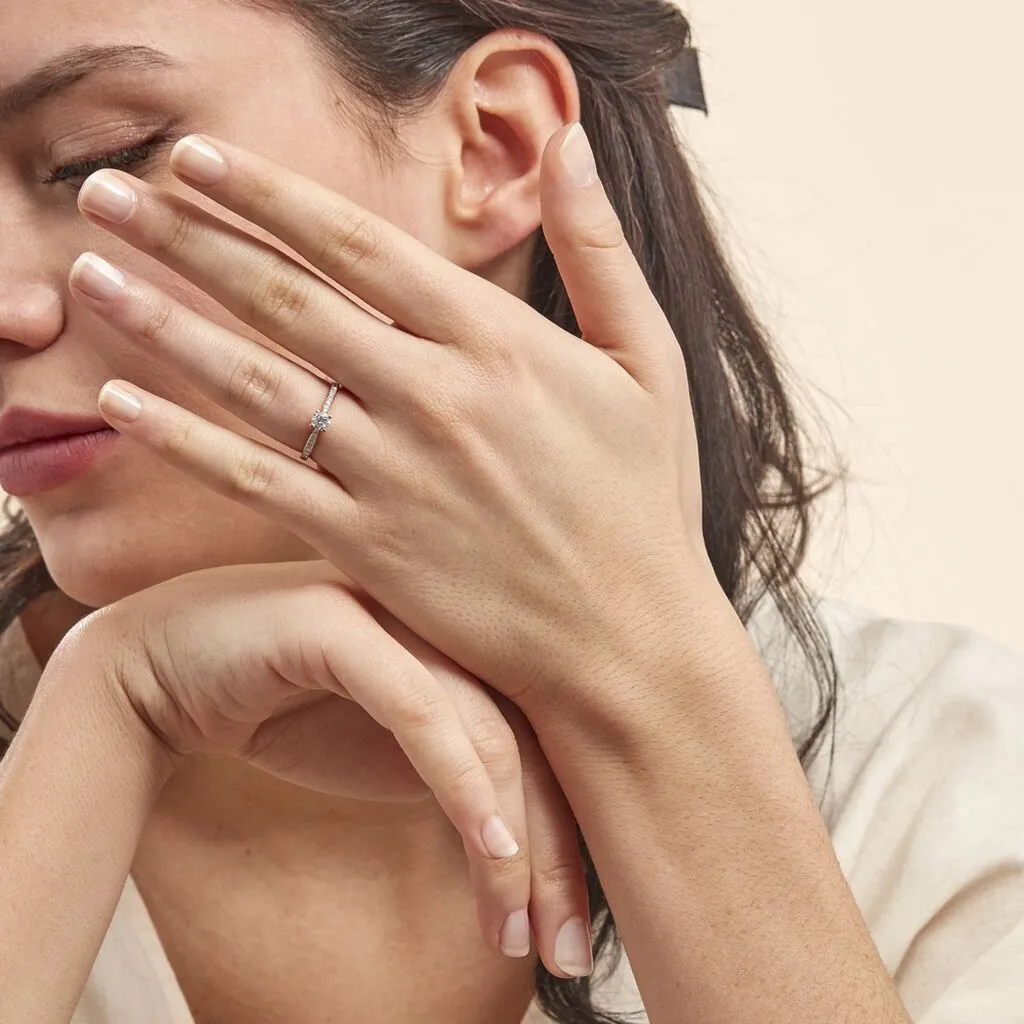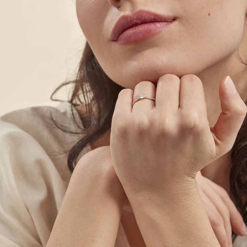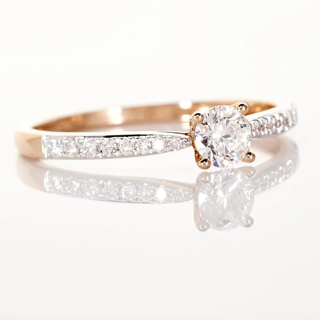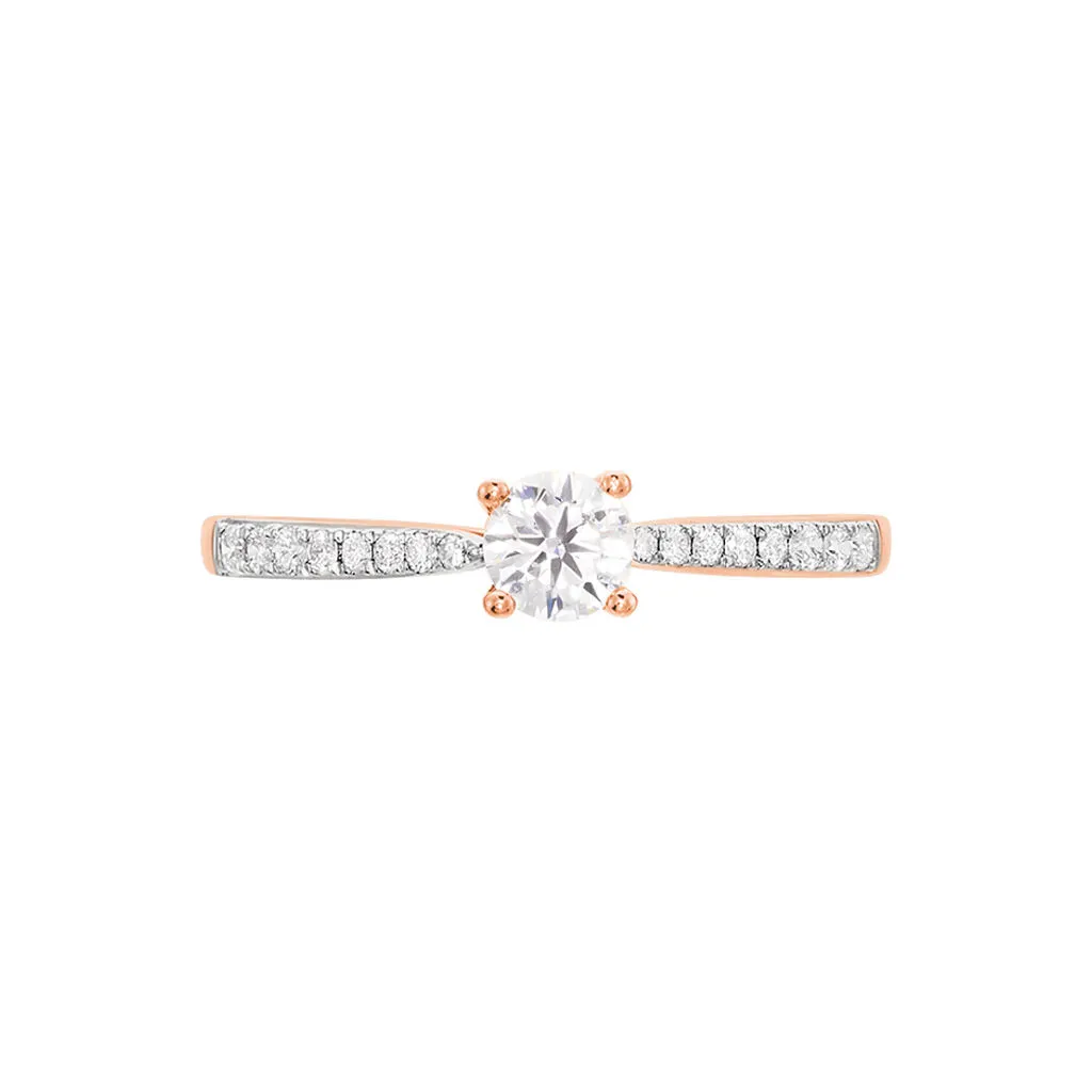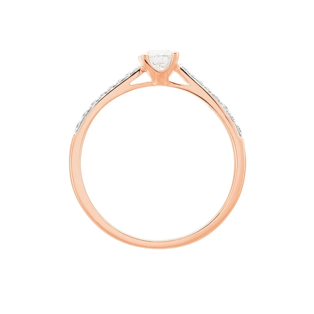 Solitaire Or Rose 750/1000 Diamant Central 0.30cts Serti Griffes Accompagnes Diamants