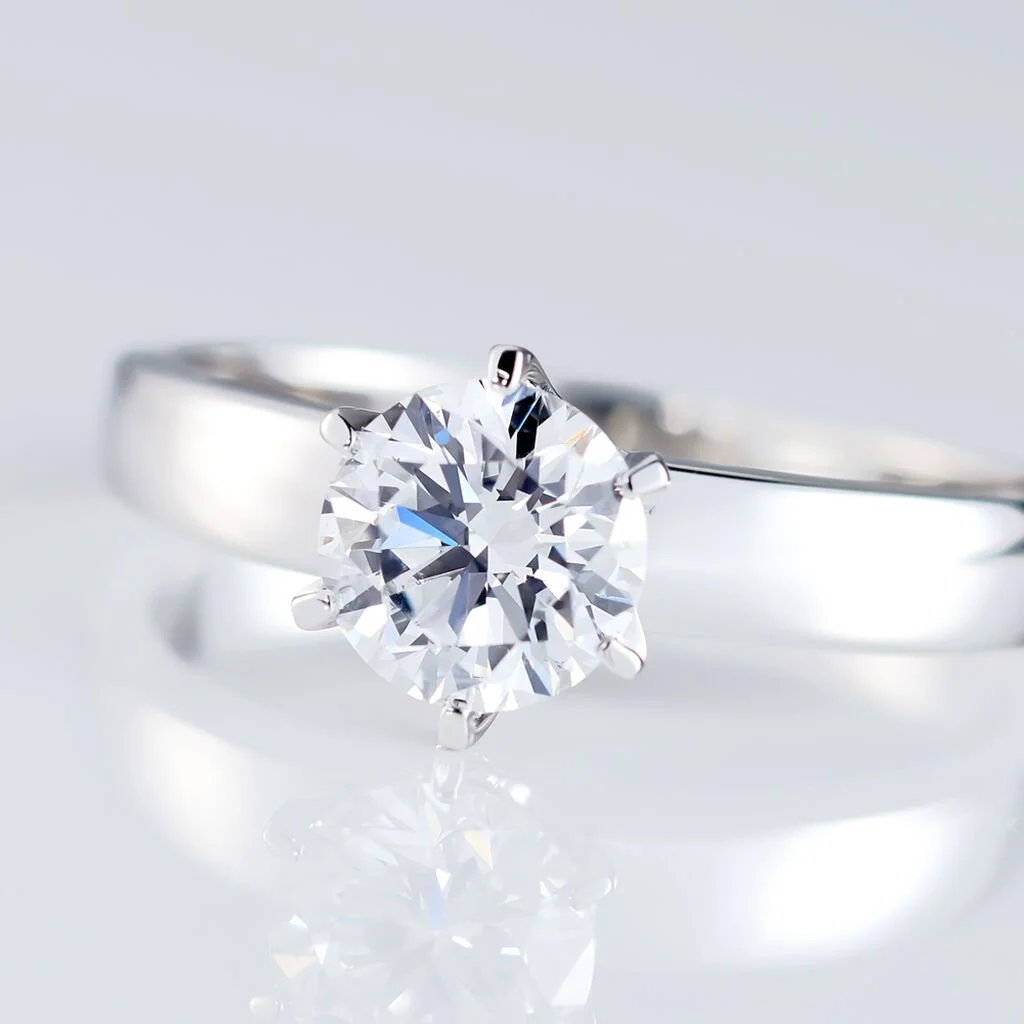 Solitaire Or Blanc 750/1000 Diamant Central Synthetique 1ct Serti 6 Griffes