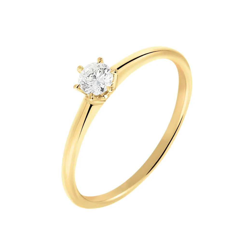 Solitaire Or Jaune 750/1000 Diamant 0.20ct Serti 6 Griffes
